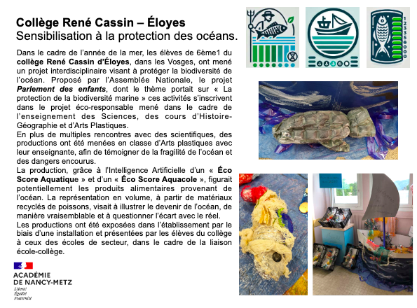 ACTUALITES Sensibilisation à la protection des océans – Collège René Cassin – Éloyes 3 juillet 20253 juillet 2025 bhorrut Collège René Cassin – ÉloyesTélécharger