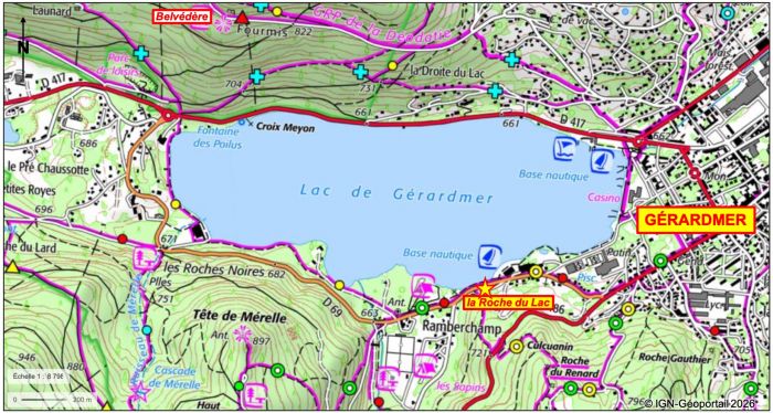 Fig.1 : Carte du lac de Gérardmer et localisation de la Roche du Lac