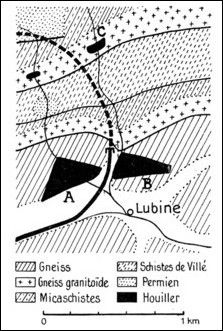 Fig. 3: Carte localisant les deux zones d'affleurements au début du XXème siècle (© Jung 1928).