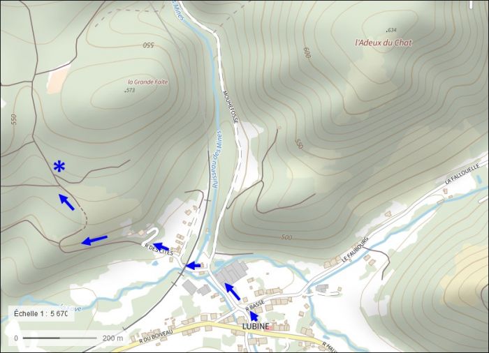 Fig. 4: Affleurements des schistes noirs accessibles près de Lubine (extrait de carte © IGN-Géoportail 2024).