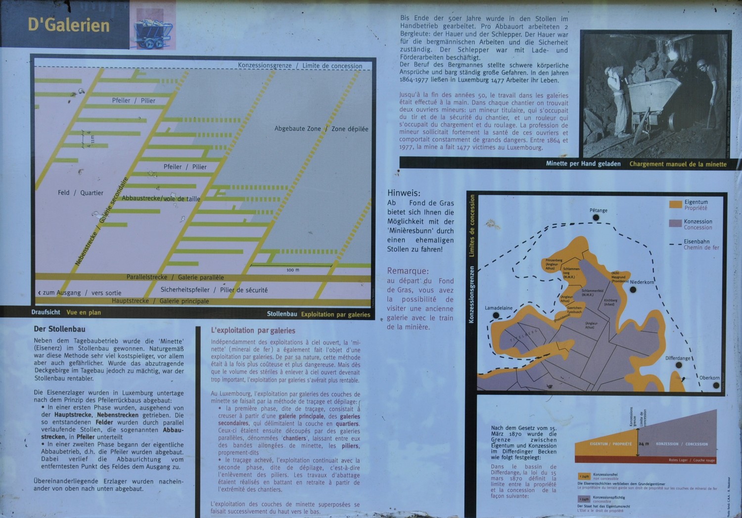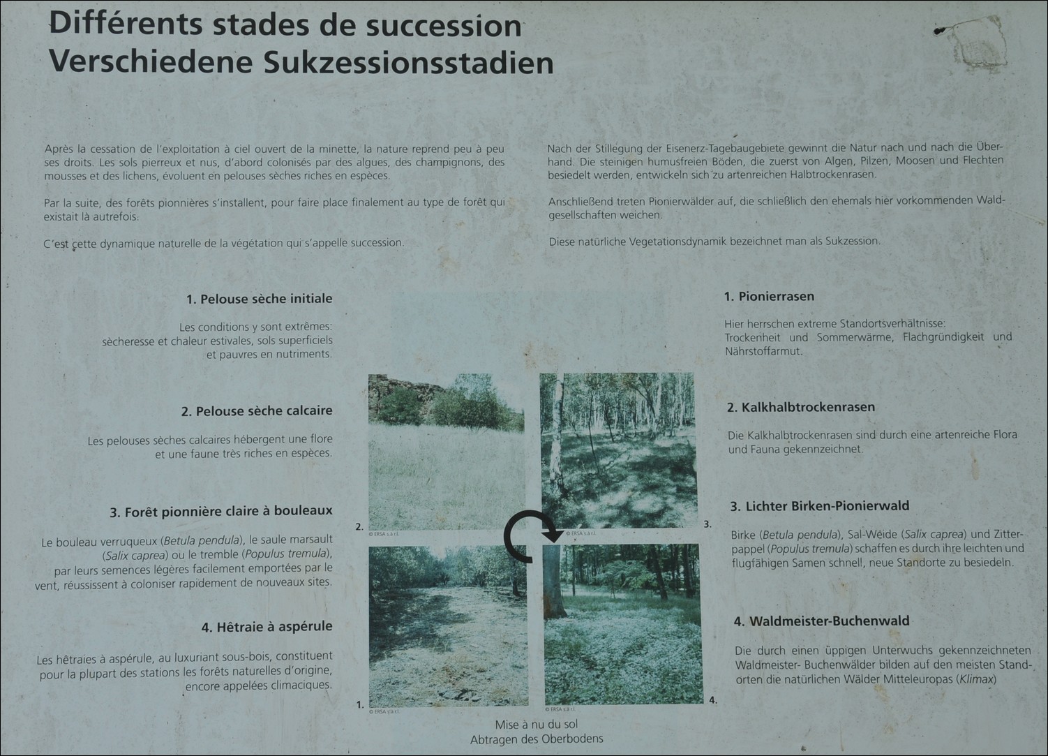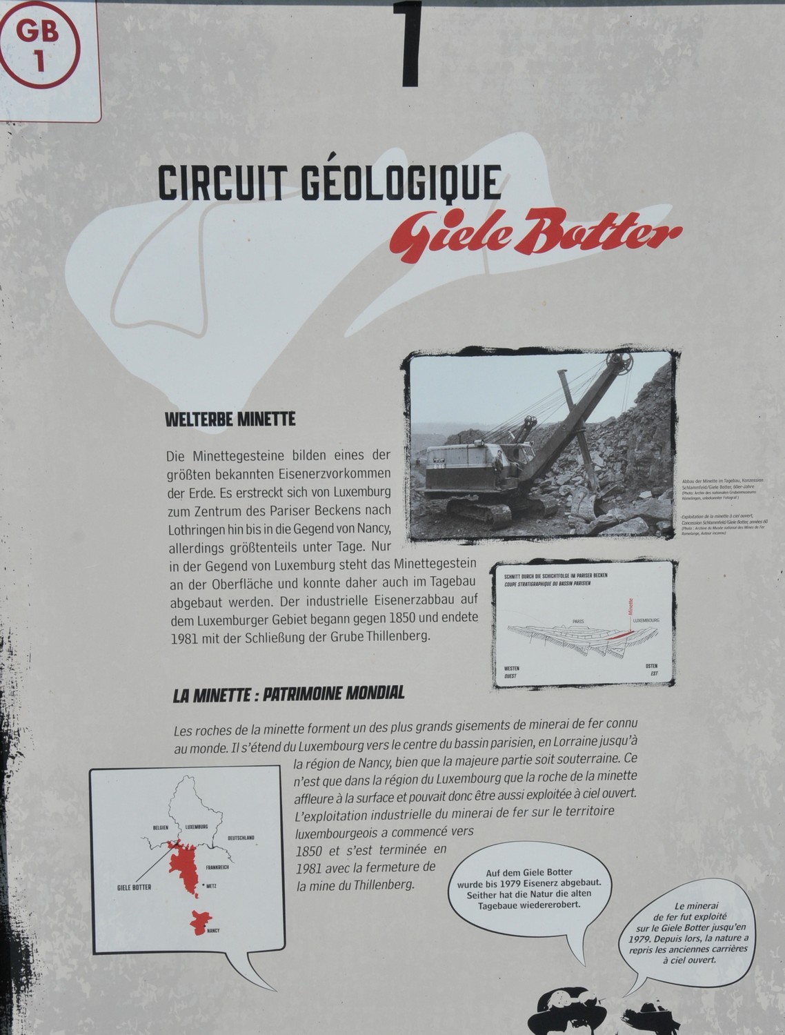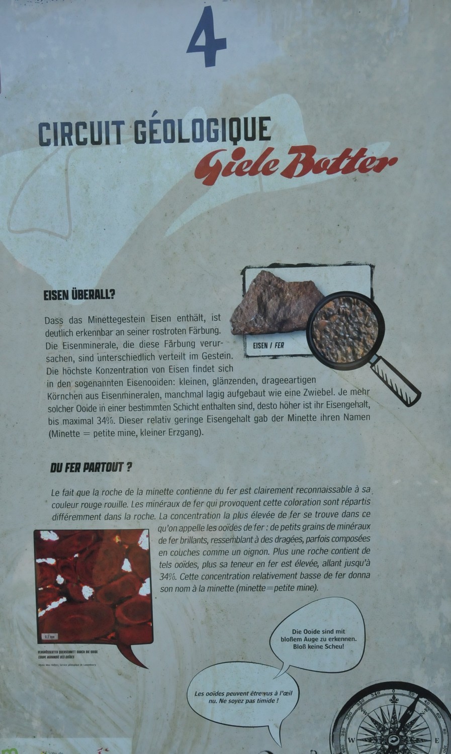 Galerie de panneaux illustrés implantés le long du sentier géologique en langue française et luxembourgeoise :