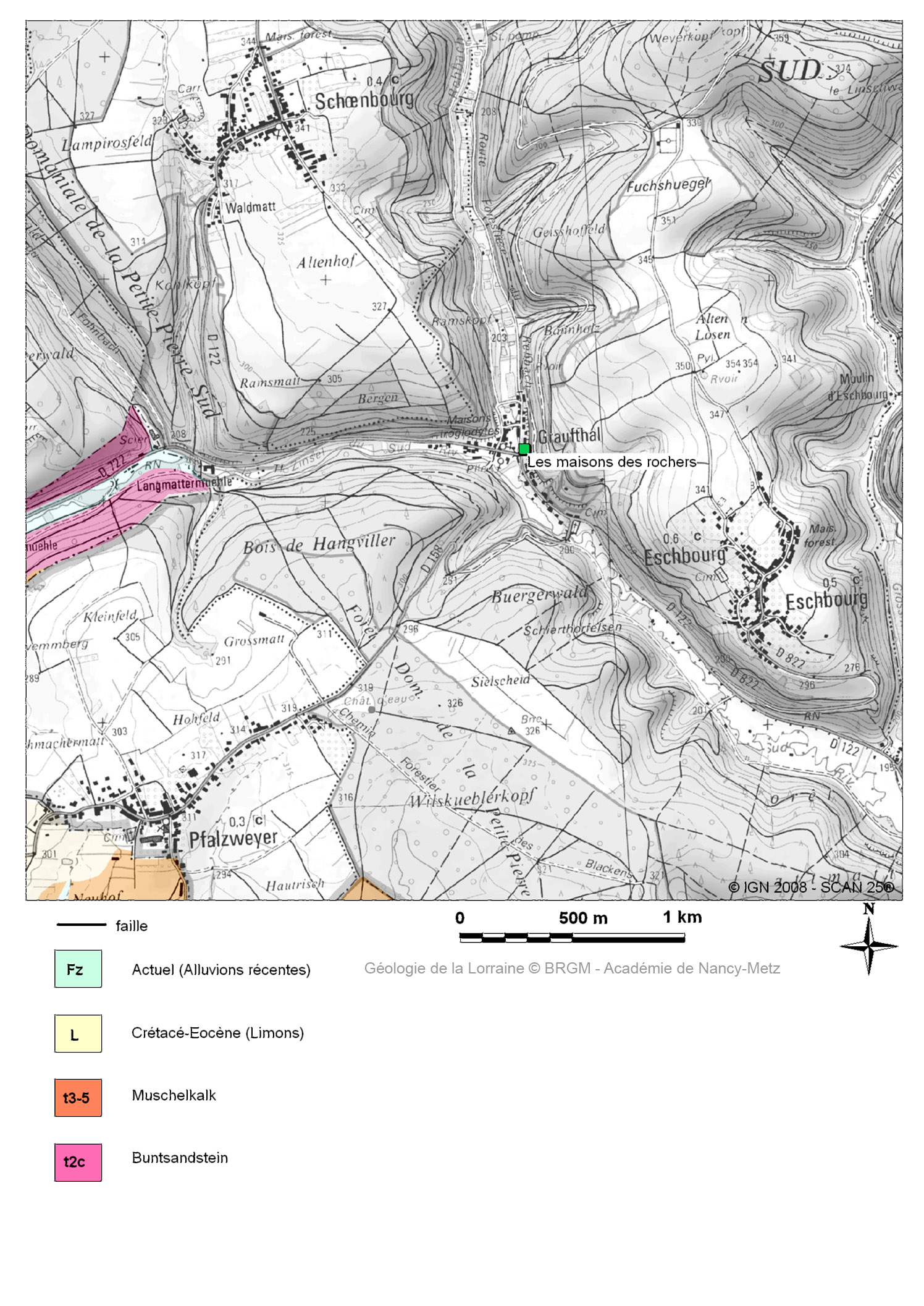 | Vous êtes ici : SVT Lorraine > Géologie Lorraine > Maisons et rochers à Graufthal > | Navigation : |