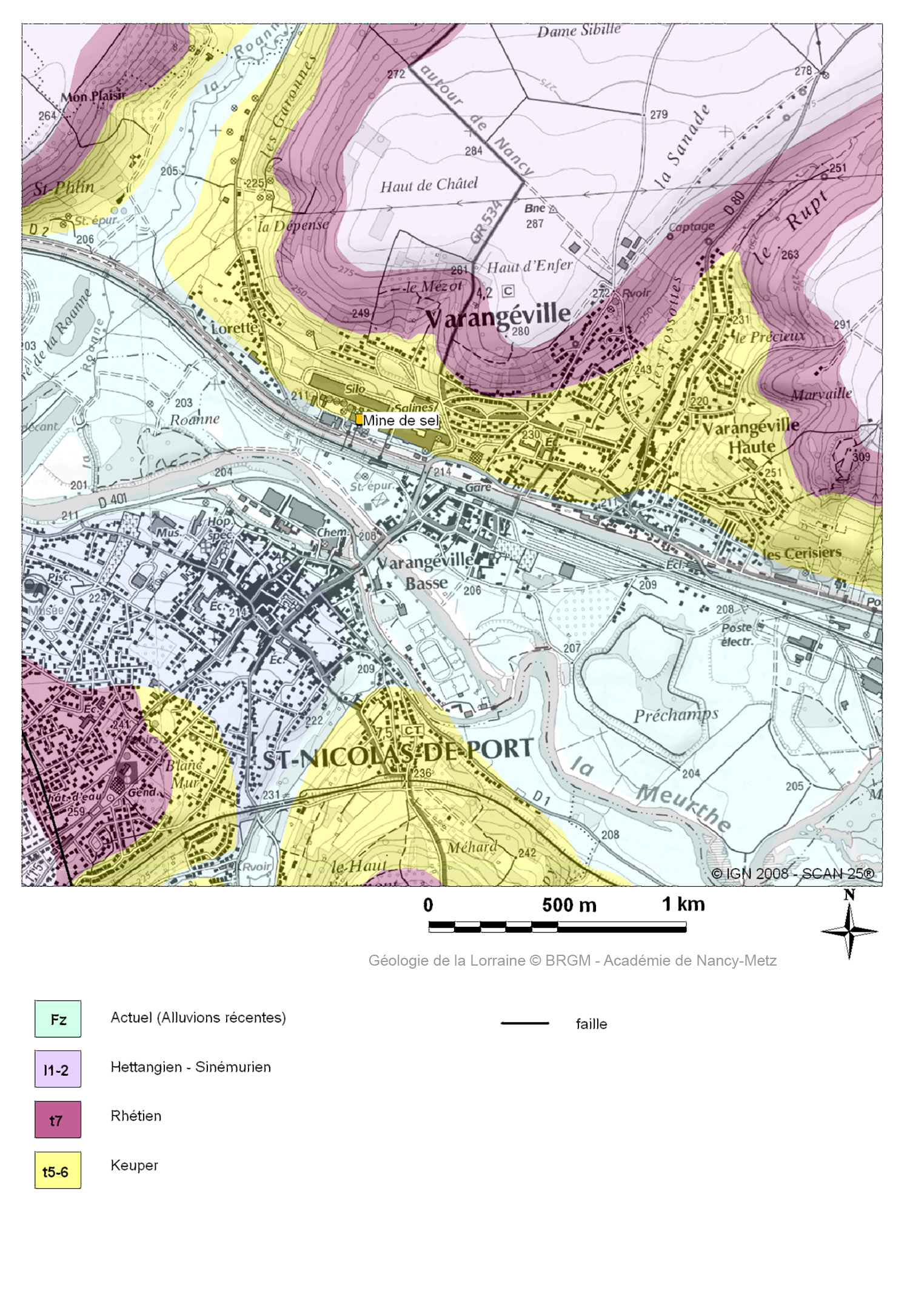 Extrait de carte géologique - Varangéville (54) Télécharger l'extrait de carte du BRGM au format pdf (imprimable)