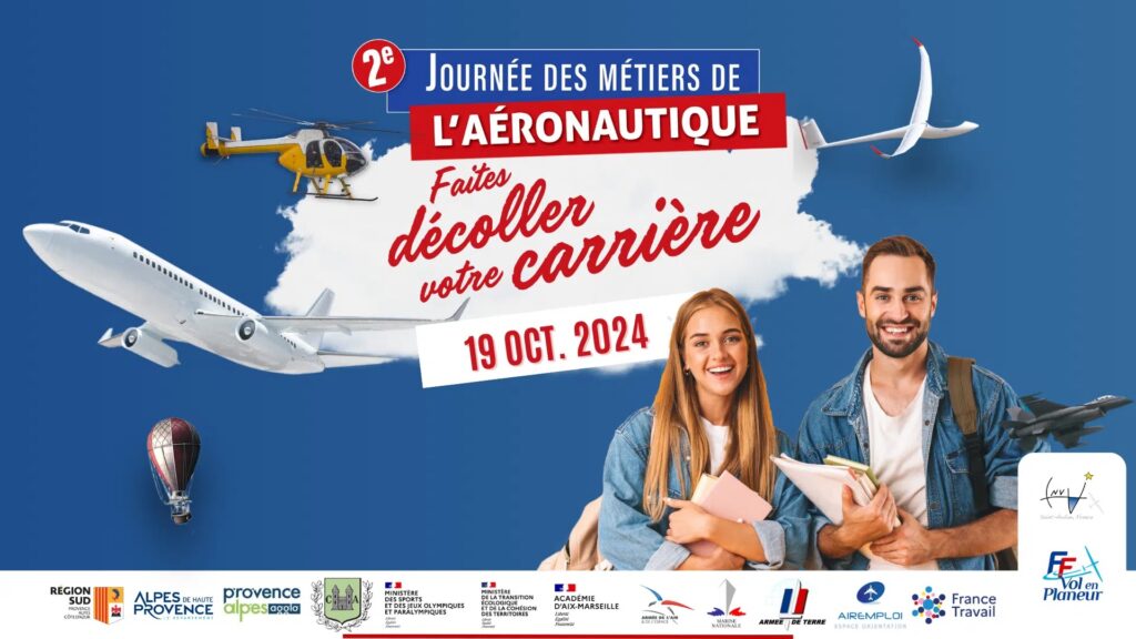 Le 19 octobre 2024, la Fédération Française de Vol en Planeur vous invite à l’aérodrome de Château-Arnoux Saint-Auban pour la 2ème Journée des Métiers de l’Aéronautique. Cet événement offre une opportunité unique de découvrir les différents métiers de l’aéronautique, de rencontrer des spécialistes et d’échanger avec des professionnels d’un secteur en pleine expansion.