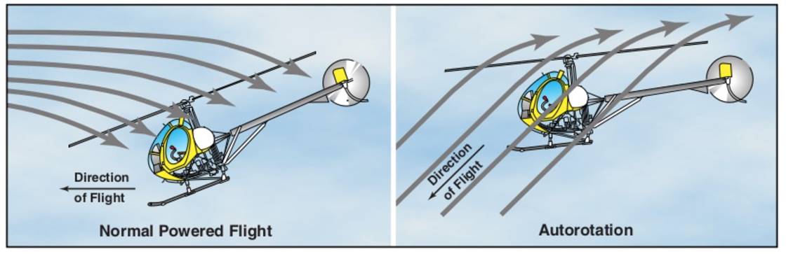 pendant l'autorotation, l'air monte dans le système de rotor par le bas lorsque