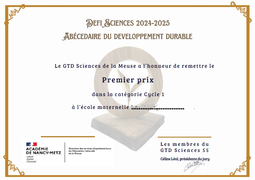 Le GTD sciences 55 remercie chaleureusement toutes les classes et écoles qui ont relevé le défi de produire un « Abécédaire du développement durable ». Le jury, présidé par Céline Léal, IEN de Commercy, a particulièrement apprécié la diversité et la richesse des réalisations.