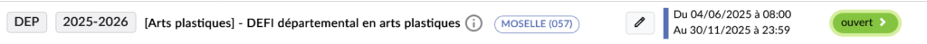 Chaque enseignant inscrit sa classe en ouvrant un projet. Ainsi, si trois classes sont engagées dans une école, il y aura trois consignations de projets « DEFI départemental en arts plastiques« .