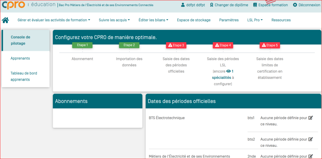 - Les PFMP pour les classes de l’établissement (PFMP 1 et 2 pour seconde, 3 et 4 pour première etc….)
