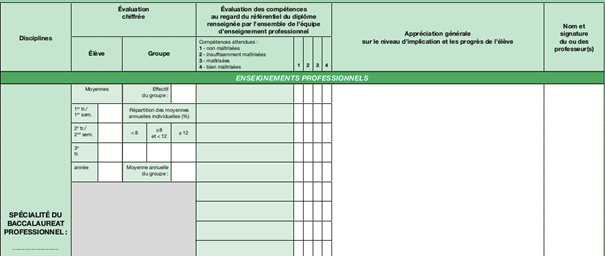- l’appréciation générale de la partie Spécialité du baccalauréat professionnel ;