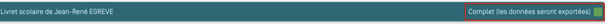 Le niveau de complétude de chaque livret est indiqué dans le bandeau vert intégrant le nom de l’élève :