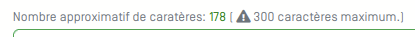 Ce texte est limité à 300 caractères. Un compteur vous indique, en temps réel, le nombre de caractères saisis.