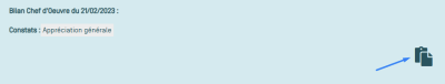 En cliquant sur l’icône à droite dans la fenêtre du bilan, les commentaires qui ont été mis dans le constat seront automatiquement recopiés dans la fenêtre du texte d’appréciation générale.
