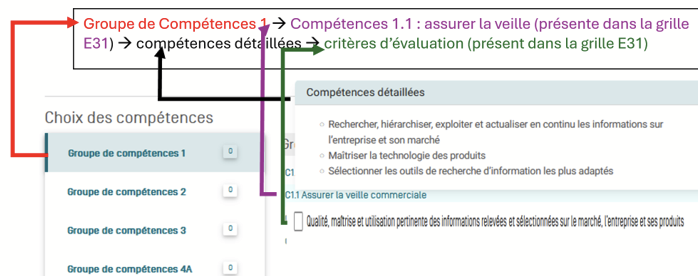 Les compétences et les critères d’évaluation sélectionnés sont listés en bas de la page.
