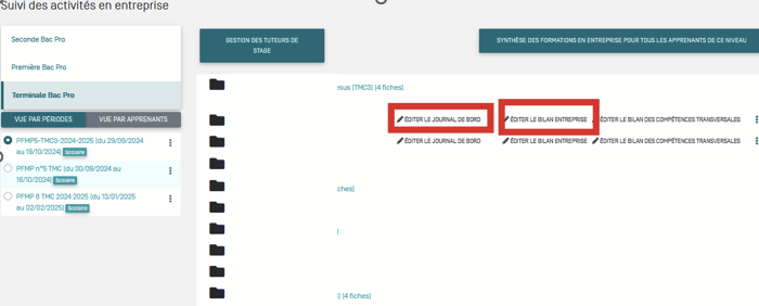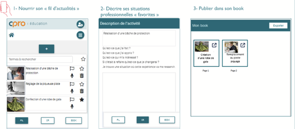 - un journal de bord/portfolio qui permet de consulter les activités hebdomadaires de l’apprenant en entreprise et d’identifier les tâches professionnelles réalisées. Ce journal est complété par l’apprenant à partir de son compte CPRO.