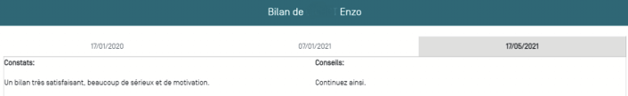 Le contenu du bilan indique d’abord les constats et les conseils renseignés par l’enseignant.