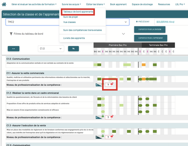 La création de bilans intermédiaires se fait via le module “Tableaux de bord apprenants”