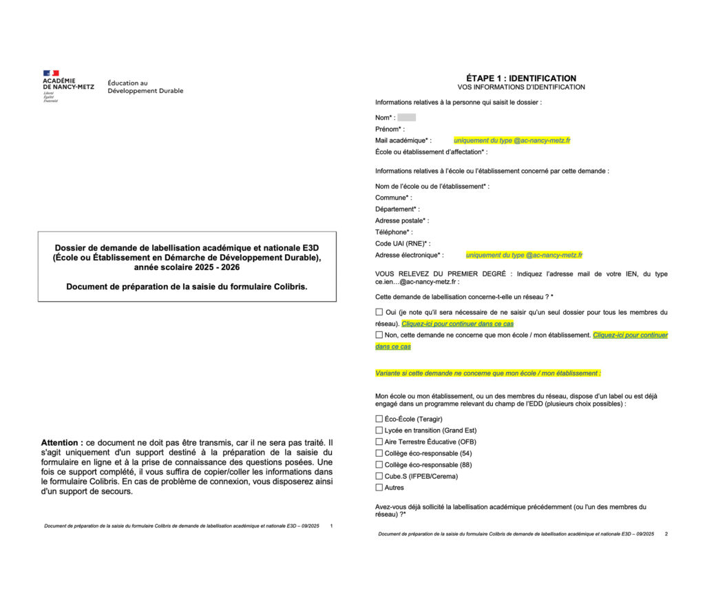 Nous contacter à l’adresse : secretariatEDD@ac-nancy-metz.fr pour obtenir un dossier de labellisation simplifié permettant d’obtenir un niveau 1