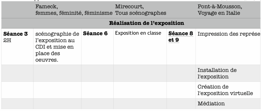 - A Fameck, au lycée St-Exupéry, avec le groupe option HDA (2nde, 1ère, Terminale), mené par Caroline Sabot, professeure d’histoire des arts. L’angle de travail est centré sur une question au programme : “femmes, féminité, féminisme”.