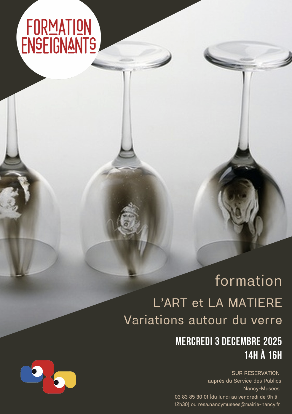 Cette formation propose un parcours à travers les collections permanentes et l’exposition temporaire « Nancy 1925 » autour de ce matériau protéiforme qu’est le verre, du matériau du quotidien à la matière sublimée dans l’art.