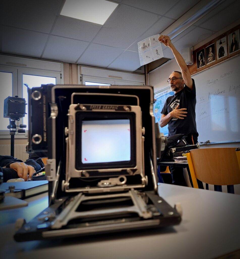 Ce jeudi 28 novembre, Philippe Albano est venu présenter l’atelier de photographies au collodion humide dans le groupe de 1ère Spécialité HIDA.
