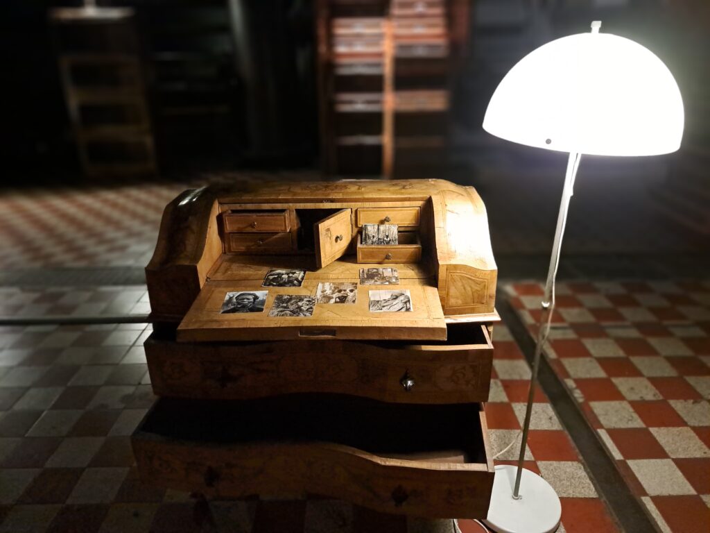 L’artiste cubaine Susana Pilar Delahante Matienzo d’origine africaine a conçu une installation de meubles anciens sur lesquels sont déposés de vieilles photographies de femmes noires. Pour reconstruire son passé en partie effacé, elle a eu recours à l’IA qui a généré selon ses instructions ces portraits oubliés de ces femmes déposés sur ces meubles anciens.