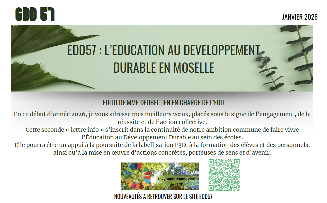 Découvrez la nouvelle lettre d’information EDD57, dédiée à l’Éducation au Développement Durable en Moselle.