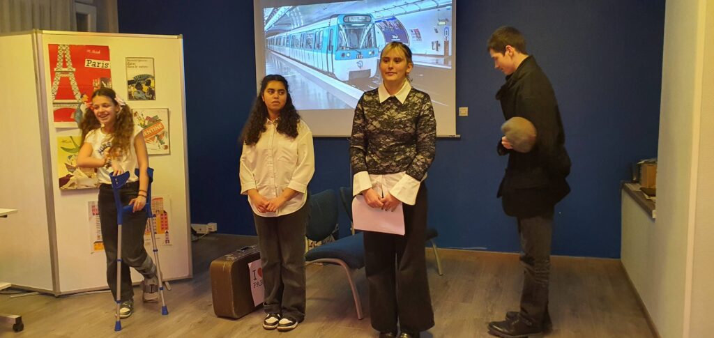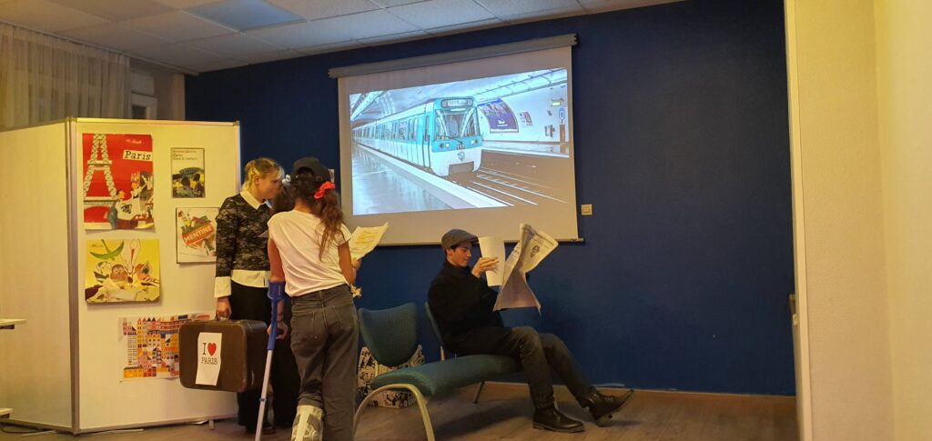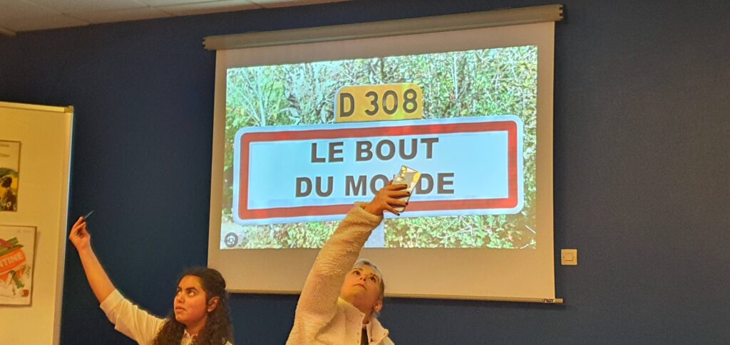 Atelier animé par Mme Césaroni, professeure documentaliste et les élèves du club lecture ( Lola P. 5e3 / Marjolaine G. 3e1/ Paul S. 3e1/ Sihem E. 3e3). Deux romans ont été choisis pour représenter la ville et la campagne : Zazie dans le métro de Raymond Queneau et Mentine privée de réseaux de Jo Witek. Deux extraits ont été mis en scène.