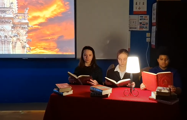 Cet atelier proposé par Mme lecomte, professeur de français et ses élèves de 4eme : Ilan M., Anthony V., Flora J., Natasha M., Anna T., Alexis T. plongeait le spectateur au coeur de “Notre dame de Paris” en compagnie de Victor Hugo.