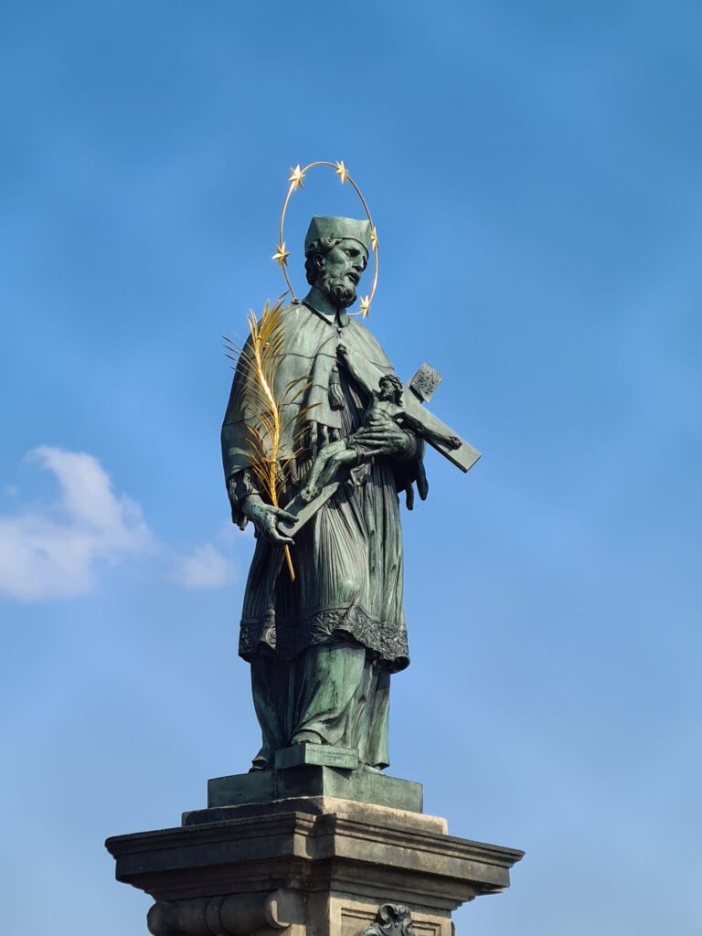 Statue de Jean Népomucène sur le pont Charles. Il est un prêtre catholique qui est l’un des saints les plus vénérés de République Tchèque.