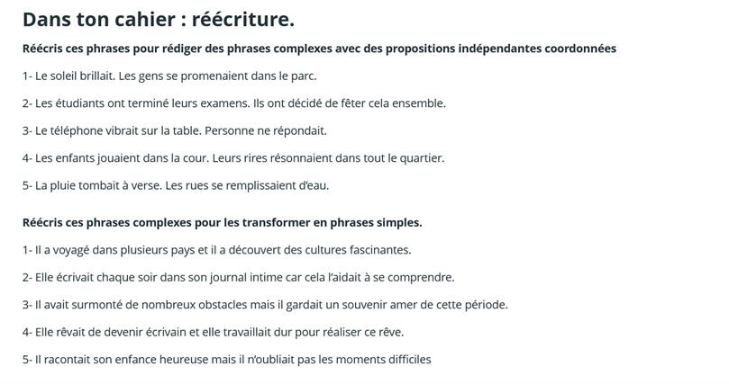 • Savoir utiliser des propositions subordonnées pour enrichir ses écrits et exprimer des idées de manière plus complexe.