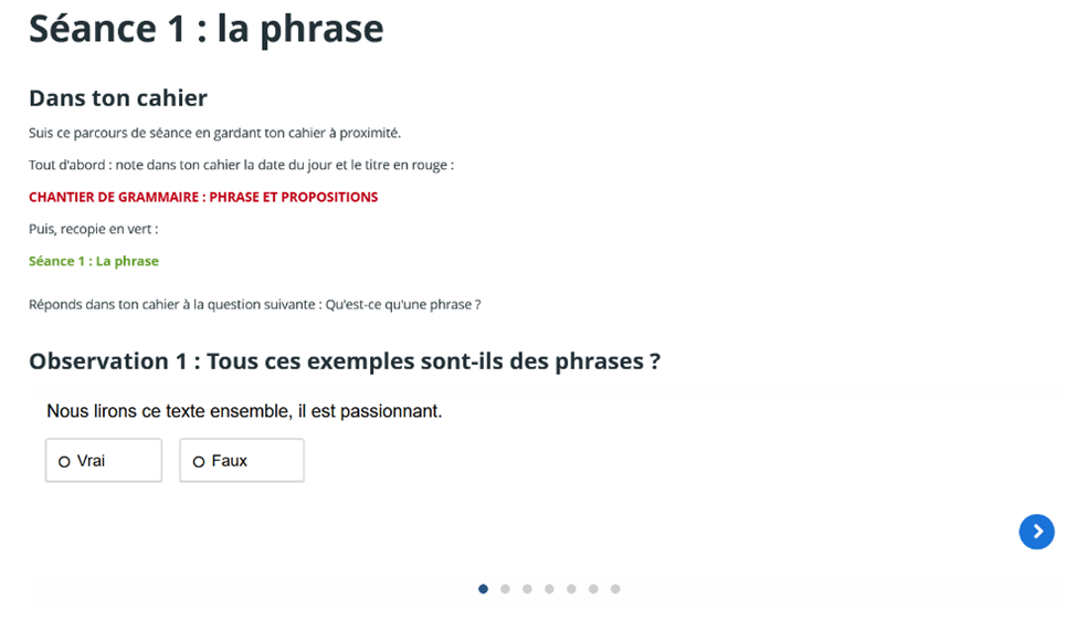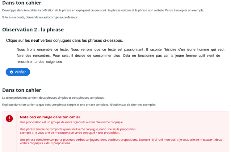 • Parfois, les élèves veulent aller trop vite et lisent en diagonale, mais la conception du parcours laisse voir quand cela est le cas grâce aux traces écrites demandées.