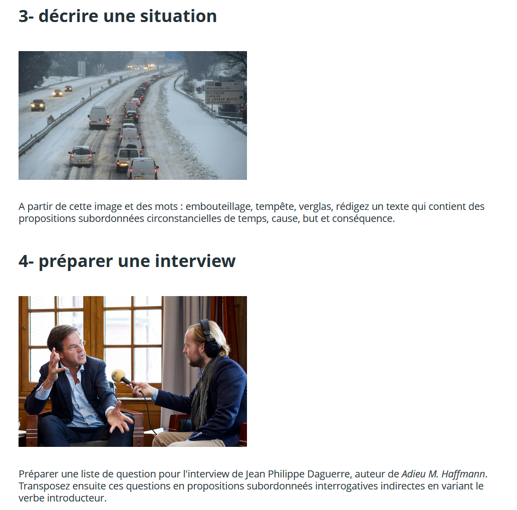 • Exercice 3 : Transformer du discours direct en discours indirect pour rédiger des phrases qui contiennent des propositions subordonnées complétives et interrogatives indirectes.