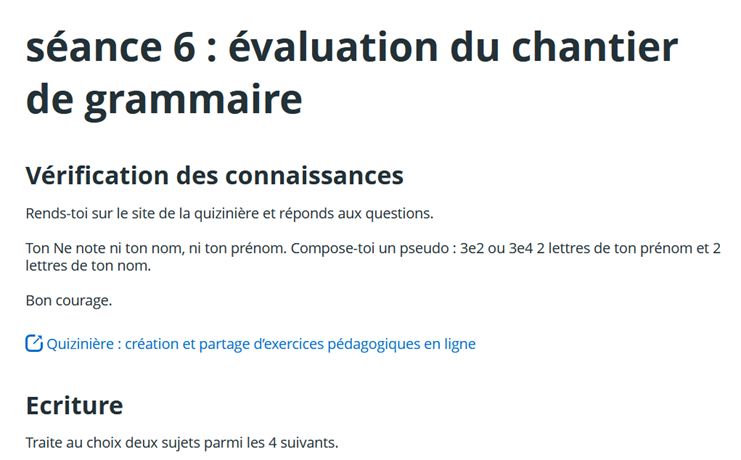 • Le chantier de grammaire permet également le développement des compétences numériques.