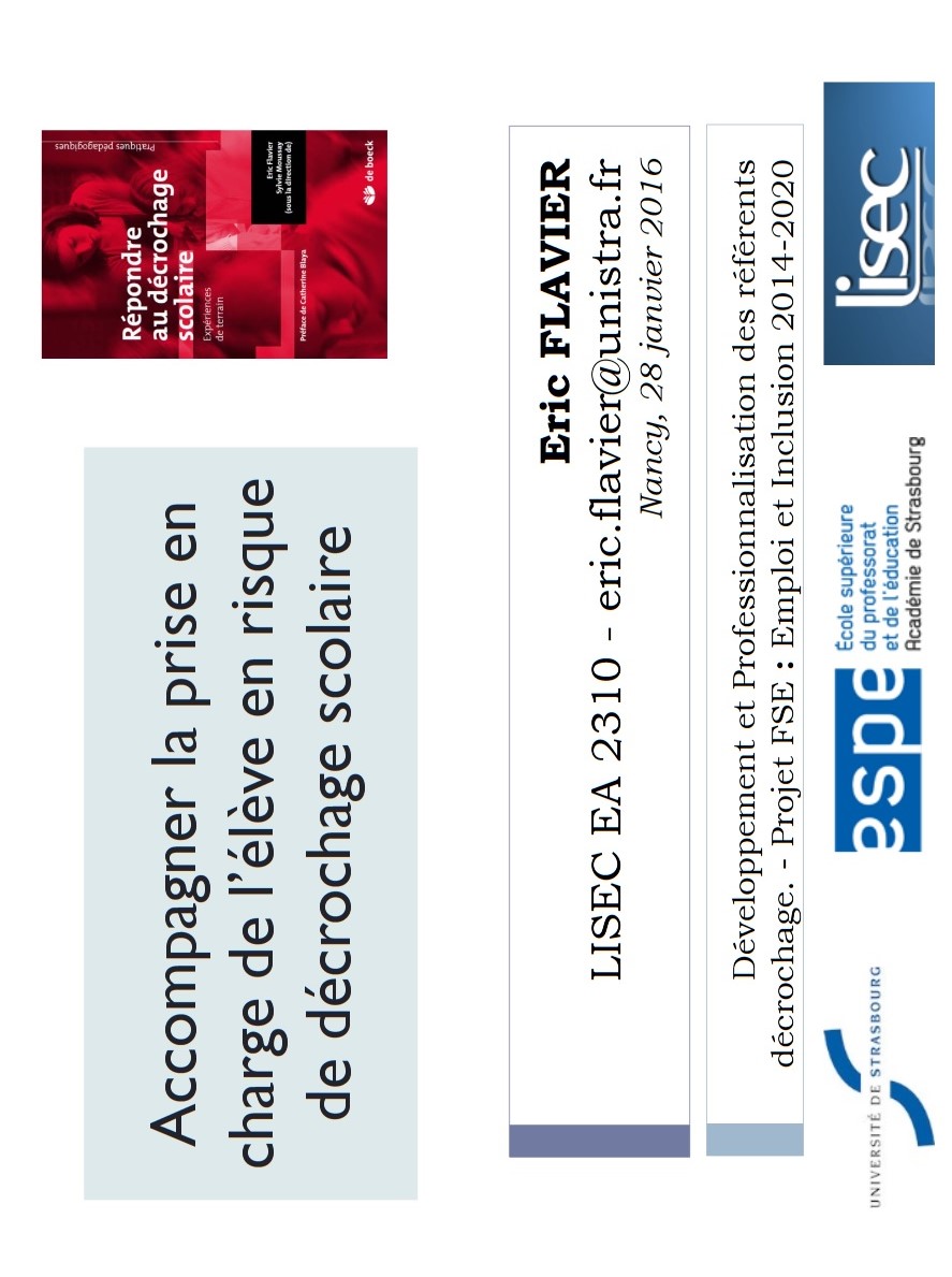 Présentation des thèmes de recherches par M. Eric Flavier Maître de conférence ESPE Strasbourg