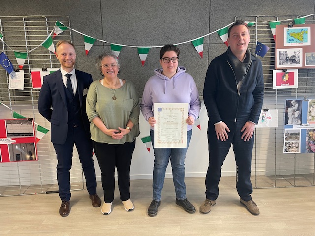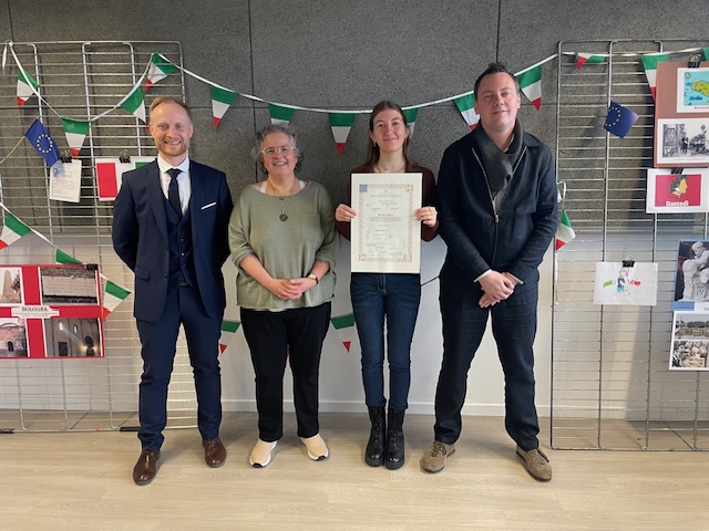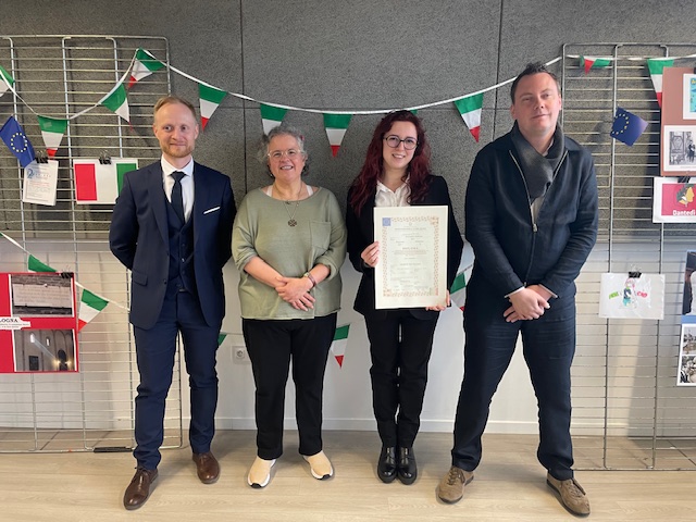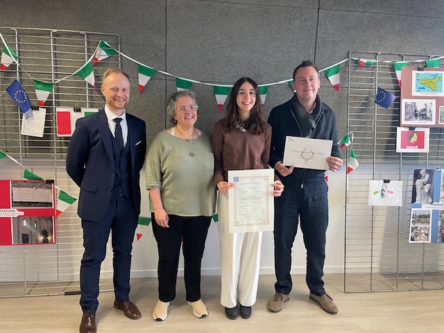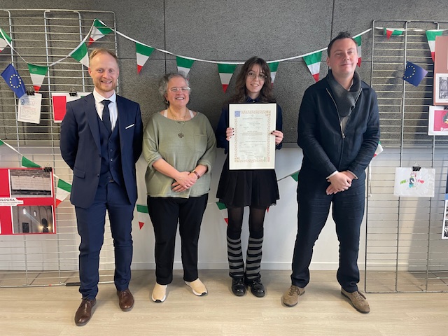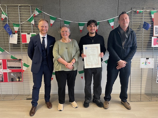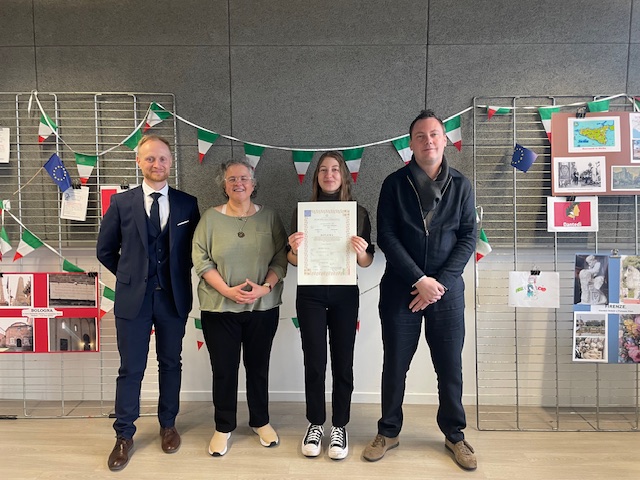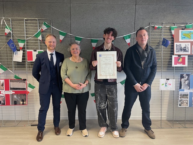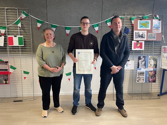 Lors de la journée portes ouvertes du 14 mars, Monsieur Forget, proviseur adjoint du LPO Mézières, Mme Antenucci, Mme Tokarski et M Bacourt (enseignants de la section Esabac) ont eu l’honneur de pouvoir remettre leur Esame di Stato aux promus de juin 2022 et de juin 2024.