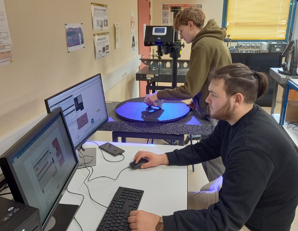 L’après-midi a été consacré à des travaux pratiques de métrologie industrielle, encadrés par Monsieur Cyril Domptail, agrégé en Génie mécanique. Les étudiants ont eu le privilège d’utiliser des machines de mesure tridimensionnelles optiques, des MMT automatiques, des bras de mesure et même des scanners 3D.