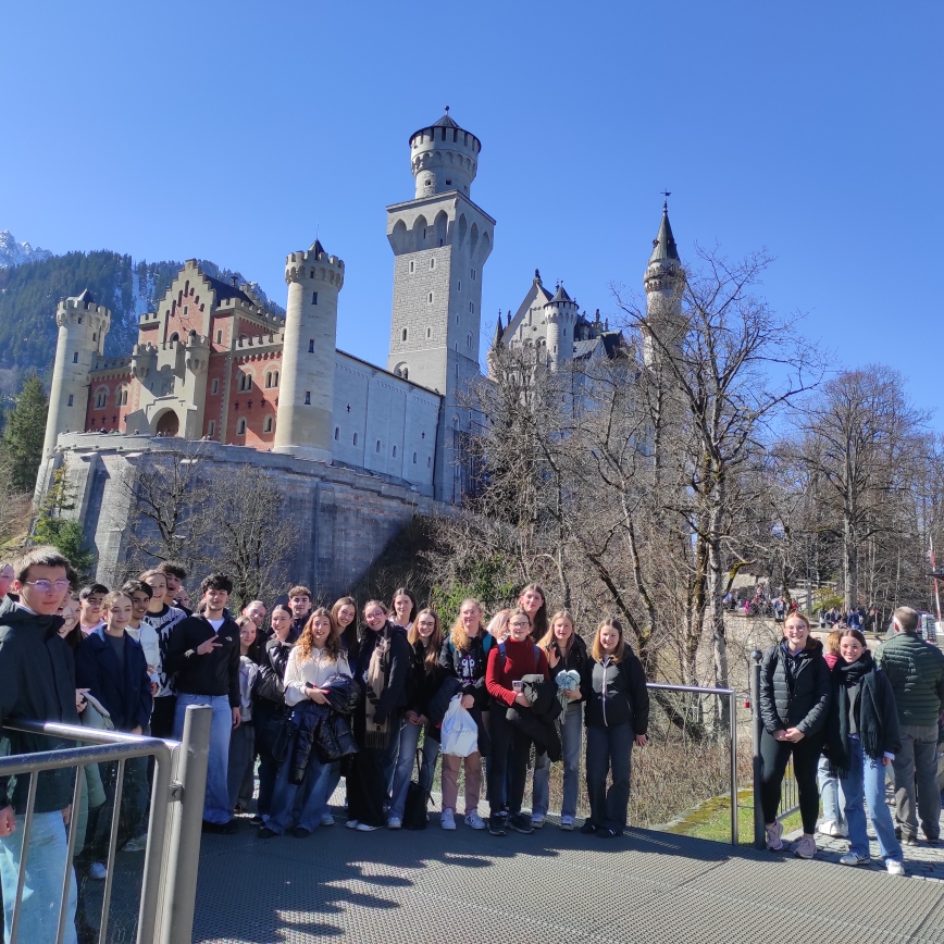 VOYAGE EN BAVIERE : du 30 mars au 4 avril 2025Programme : visite de la ville de MUNICH et du château de NEUSCHWANSTEIN ; avec 43 élèves de Premières Générale et Technologique. Château de Louis II Brasserie ERDINGER Munich Allianz ARENA (stade du Bayern de Munich)