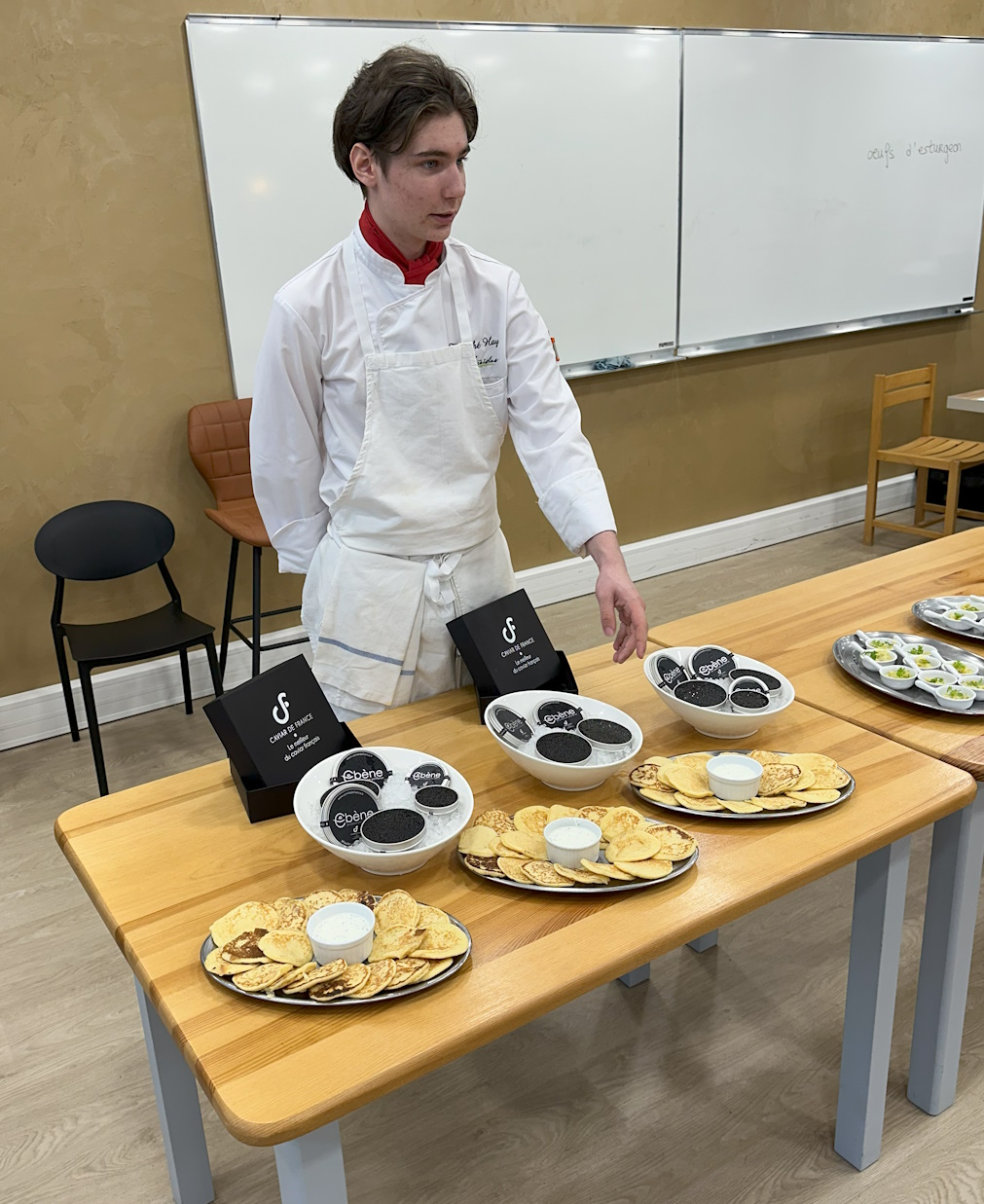 Mercredi 15 mai 2024, c’est avec plaisir et gourmandise que Monsieur Letacon a animé une présentation du caviar Français, entouré de ses collègues Mesdames Guegain et Juchaut Des Jamonières en restaurant et Messieurs Bernaud et Vouters en cuisine.