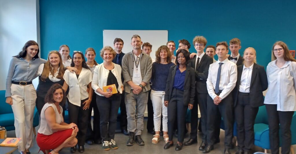 En amont de cette rencontre, dans le cours de Mme Blouet et de Mme Blandin, les élèves ont travaillé sur le contexte de ce roman (personnages, lieux et époque) et ont étudié un extrait du premier chapitre. Puis, ils ont cherché des informations sur l’auteur en lui-même : son identité, sa jeunesse, son parcours professionnel. Et, à partir de ces premières informations, par groupes, ils ont rédigé les questions possibles à poser lors de cet échange, afin d’en apprendre un peu plus sur lui.