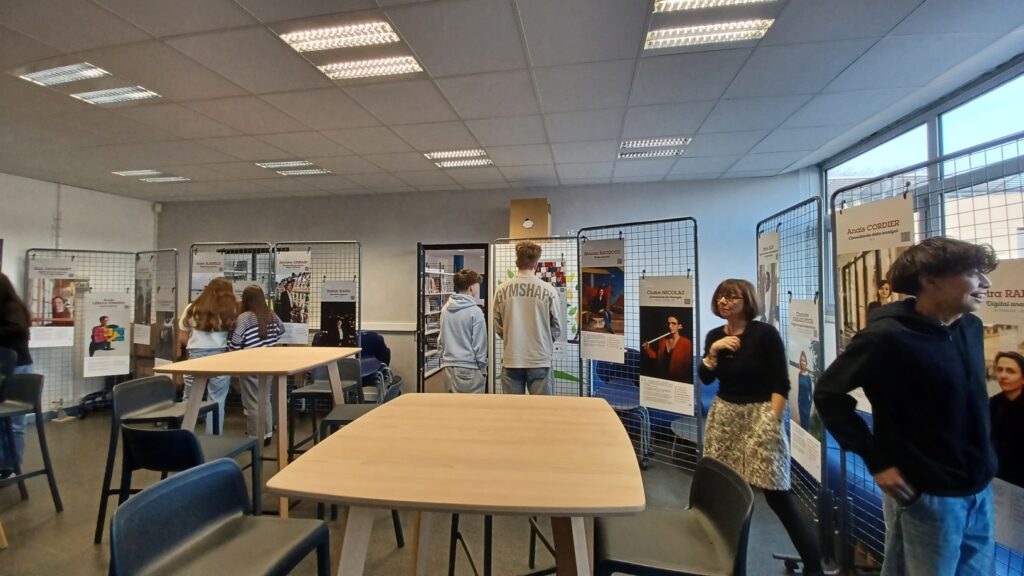 Ils ont découvert ensuite l’exposition proposée par Mme Noiré, professeure de mathématiques, composée des vingt portraits de femmes mathématiciennes dans des secteurs très variés.