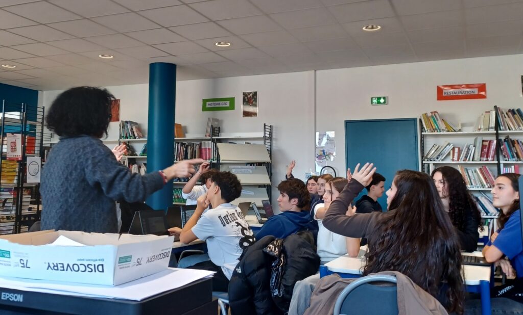 Dans le cadre des projets « égalité filles-garçons » de l’établissement et en partenariat avec l’association Femmes et Mathématiques, la majorité des élèves de seconde générale et une classe de première ont travaillé autour de l’exploitation pédagogique de l’exposition « Mathématiques, informatique…avec elles » lors de séances préparées et animées par Mme Bécha, professeure documentaliste, pour chaque classe des professeures de seconde et 1ère spécialité SVT (Mme Nicolas, Mme Noiré, Mme Weckring, Mme Granger) au CDI.
