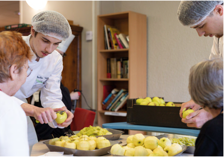 Il s’agissait aussi, pour eux, d’adapter et appliquer leurs compétences professionnelles au public particulier de l’EHPAD Le Gentilé de Laxou. En effet, que ce soit pour la préparation du menu et des plats ou bien l’organisation et le service à table, les élèves devaient prendre en compte la réglementation du lieu, le profil alimentaire de chaque personne âgée et la bienveillance à créer dans l’échange avec elles.
