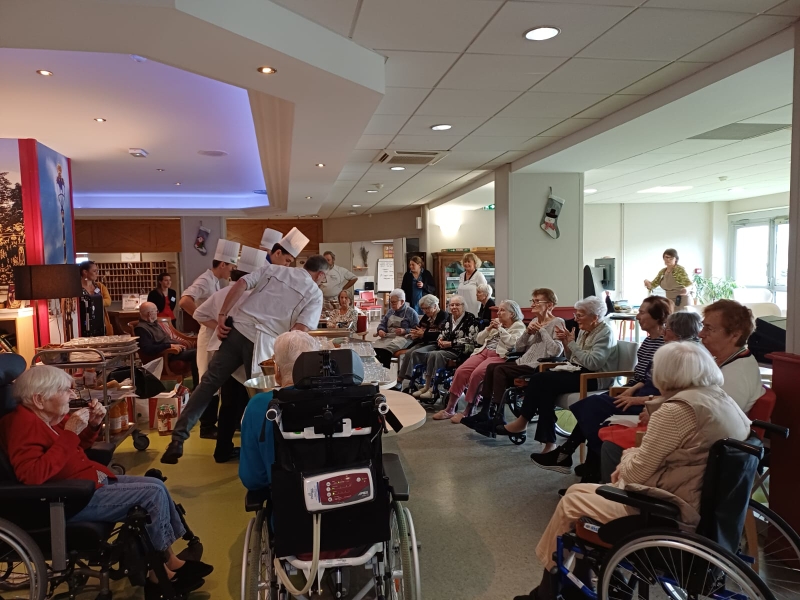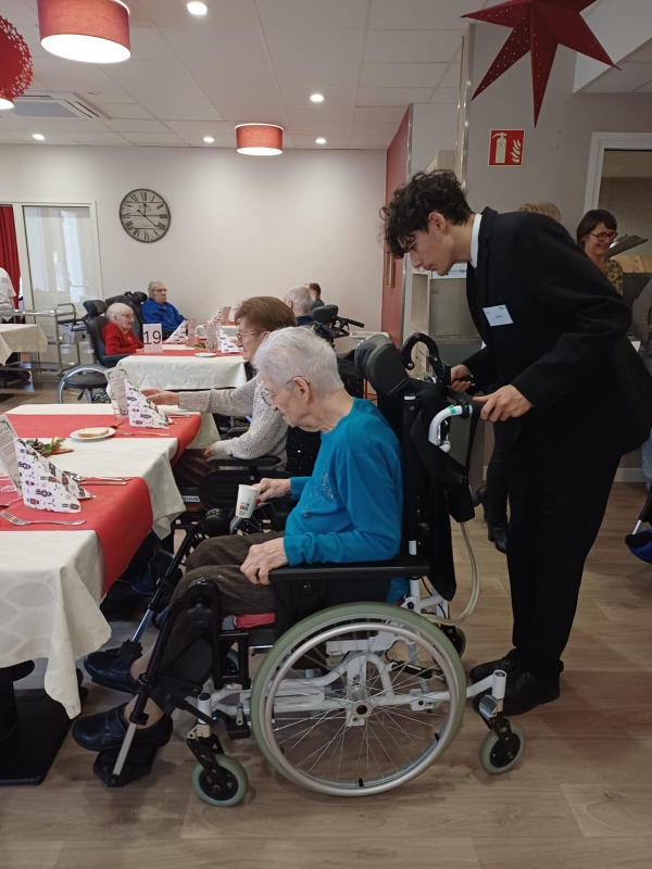 Le mercredi 3 décembre 2025, les élèves de 1ère Bac Professionnel Service A et les étudiants de 2ème année de BTS Management en Hôtellerie-Restauration option B ont organisé et réalisé un repas de fête pour les résidents de l’EHPAD Korian Le Gentilé de Laxou.