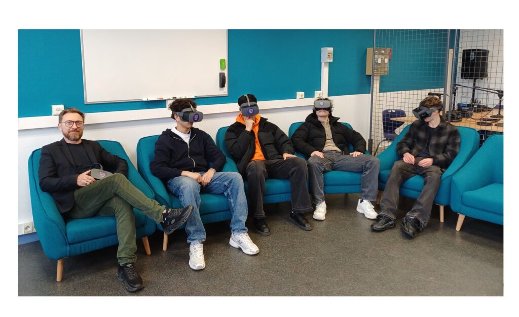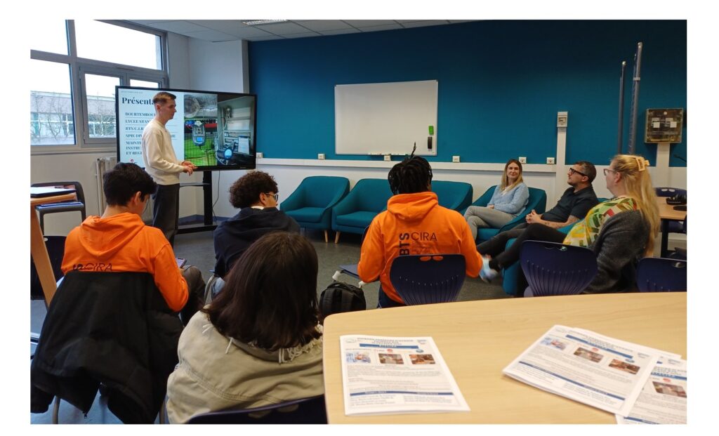 Il en était de même pour les étudiants BTS CIRA qui ont pu véritablement se mettre dans la peau de différents professionnels à travers l’expérience de casques de Réalité Virtuelle prêtés par M. Biry du groupe Vega : immersion dans un environnement technique spécifique où ils se voyaient effectuer les  missions et gestes de chaque métier et interagir avec les collaborateurs associés.