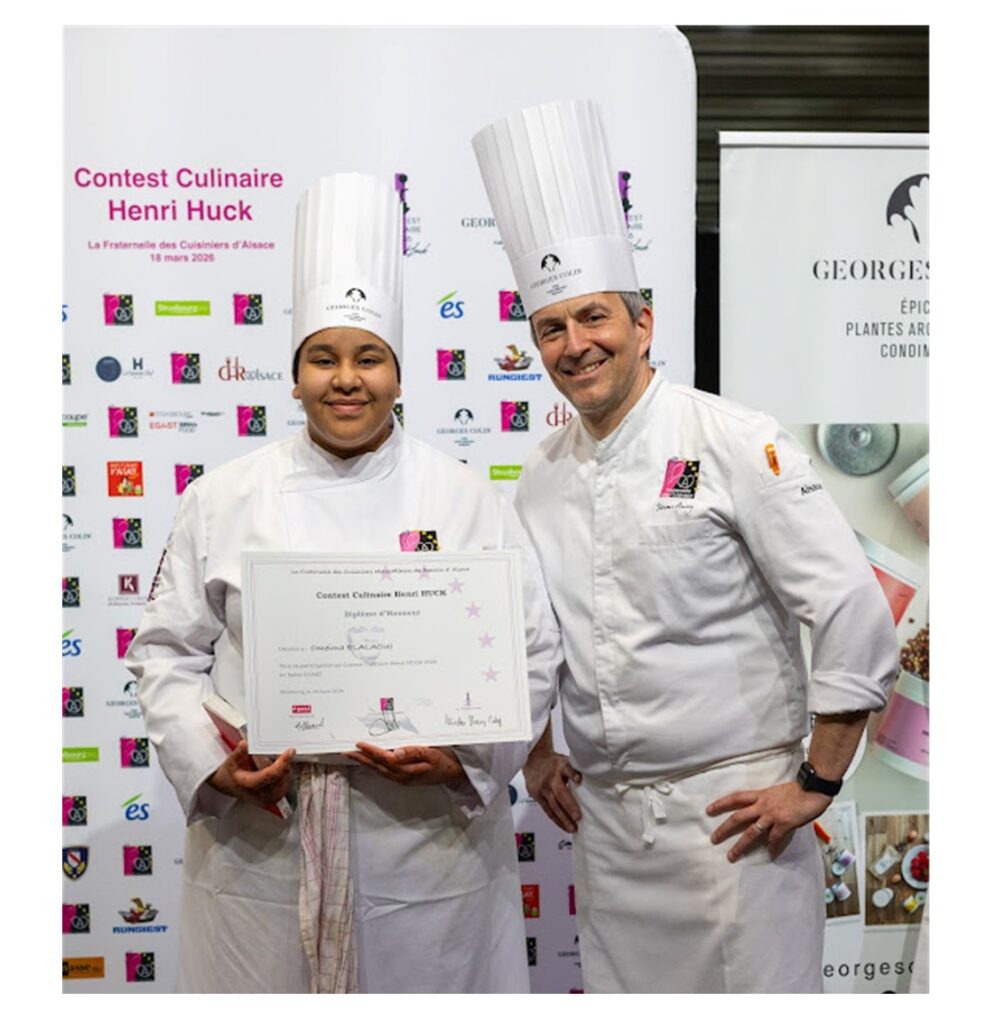 Ce mercredi 18 mars 2026, le duo d’élèves Omeima El Alaoui et Hugo Laffont de 1ère Pro B ont porté les couleurs de l’établissement lors de leur participation au Contest Henri Huck à l’EGAST, salon des métiers de bouche dans le Grand Est, se déroulant au Parc des Expositions de Strasbourg.