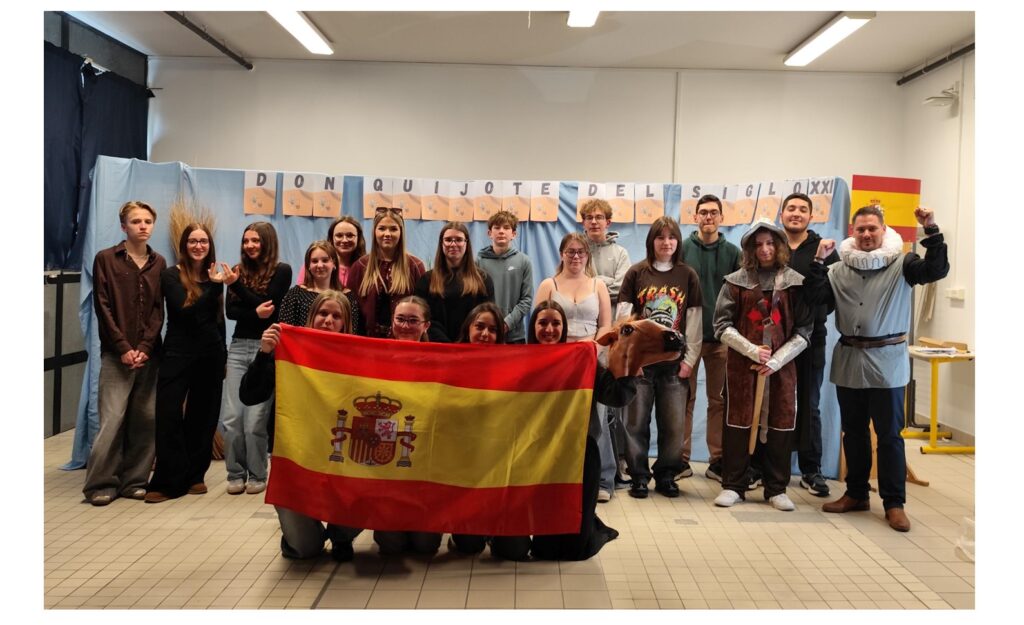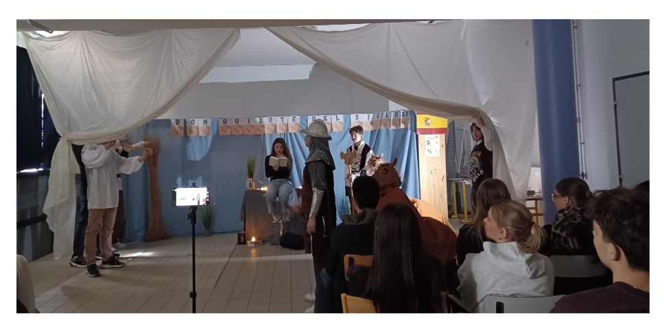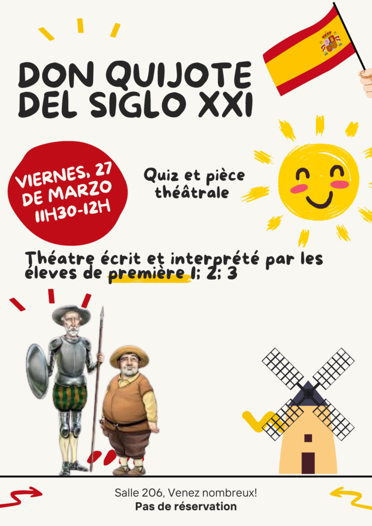 Intitulée Don Quichotte au XXIe siècle, cette pièce a réuni les élèves hispanophones de 1 GT1 1GT2 1GT3 de la classe de M. Aubert autour d’un défi aussi ambitieux qu’enrichissant.