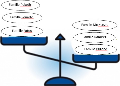 Quelle famille doit-on déplacer pour que la balance soit en équilibre ?