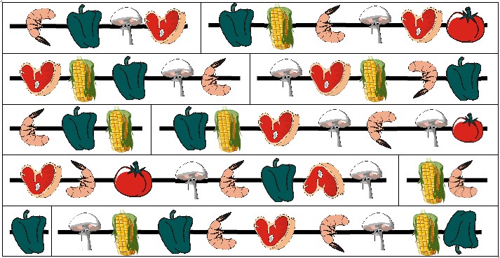 Différents paramètres ont pu induire les élèves en erreur : composition des brochettes et répartition des aliments, couleurs, possibilité de mettre 3 petites brochettes sur une ligne…