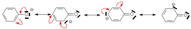 Par contre, lanion phénate sera très stabilisé par les effets mésomères du cycle aromatique, qui , en loccurrence, se comporte ici comme un accepteur délectrons :