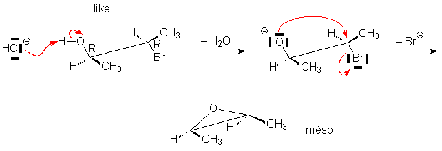On constate que cette réaction nécessite que le brome et le groupement OH soient en conformation « anti ».